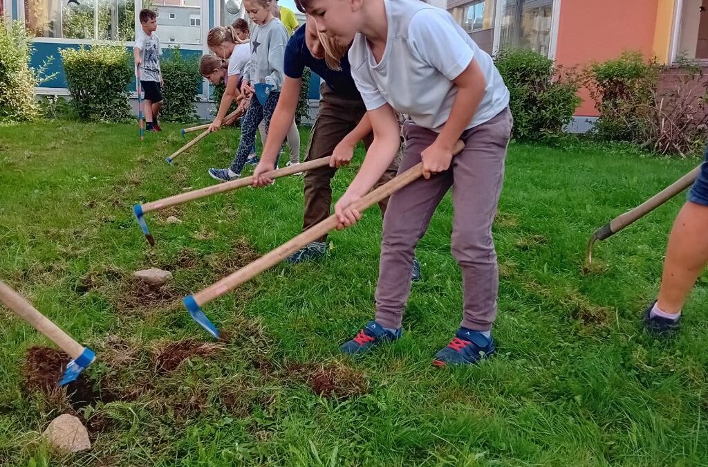 Hier ein Bild ohne SchülerInnen: Anlegen des Schulgartens in Zeltweg
